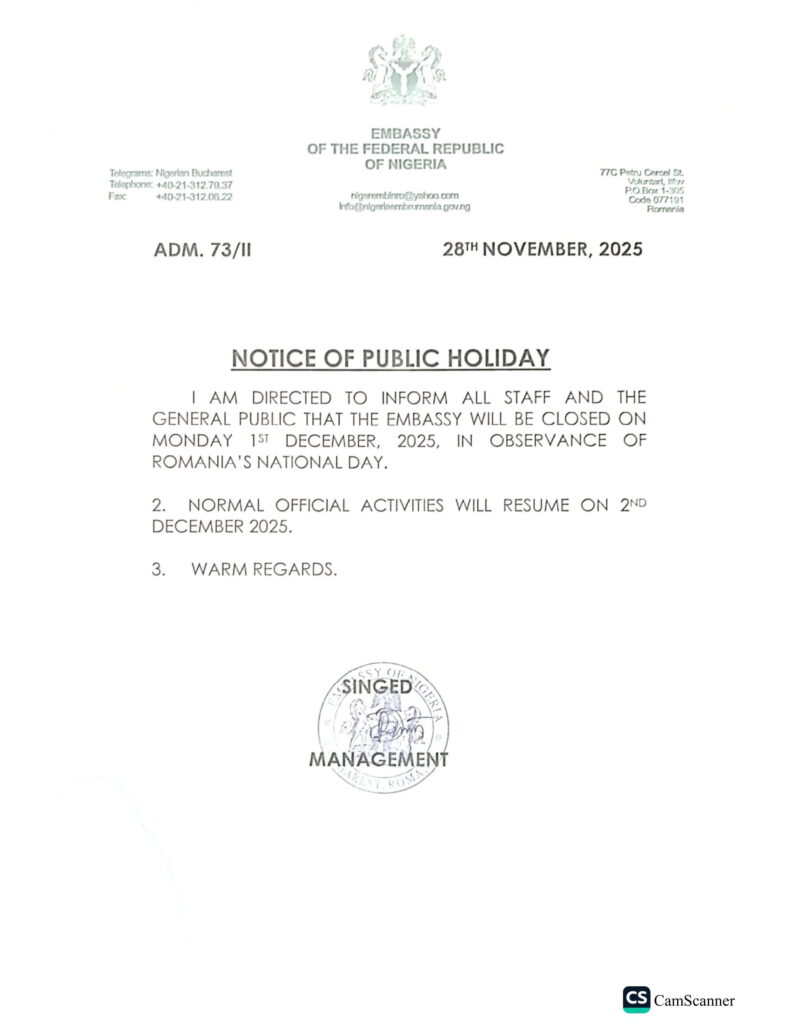 Embassy of the Federal Republic of Nigeria Bucharest, Romania